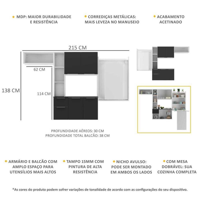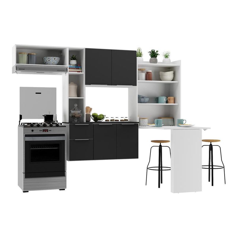 Armário de Cozinha Compacta com Mesa Dobrável MP2009 Sofia Multimóveis Branca/Preta REF: 569064_Sicredi