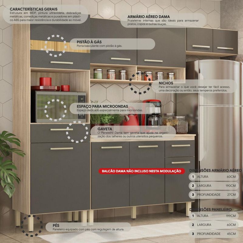 Armário de Cozinha Compacta com Paneleiro e Aéreos Multimóveis CR20236 REF: 574116_Sicredi