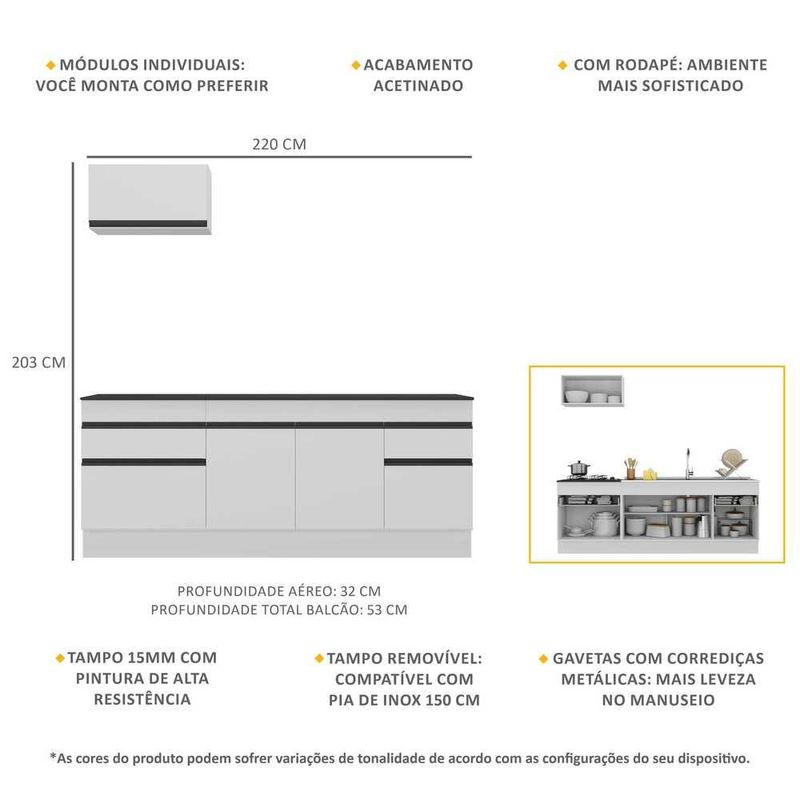 Armário de Cozinha Compacta com Rodapé Veneza Multimóveis MP2109.964 Branco/Preto REF: 770007_Sicredi