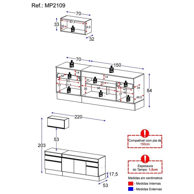 Armário de Cozinha Compacta com Rodapé Veneza Multimóveis MP2109 Branca REF: 769832_Sicredi