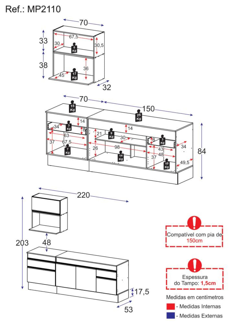 Armário de Cozinha Compacta com Rodapé Veneza Multimóveis MP2110 Branca REF: 769861_Sicredi