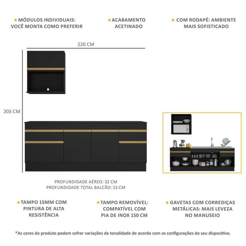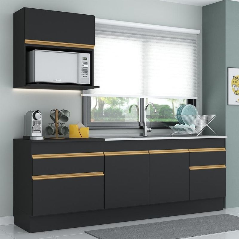 Armário de Cozinha Compacta com Rodapé Veneza Multimóveis MP2110 Preta REF: 576417_Sicredi