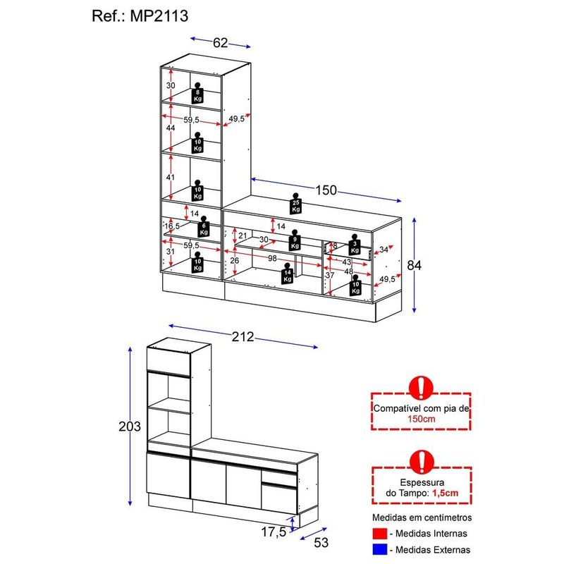 Casa e DecoraçãoMóveisArmário de CozinhaArmário de Cozinha Compacta com Rodapé Veneza Multimóveis MP2113.895 Preto