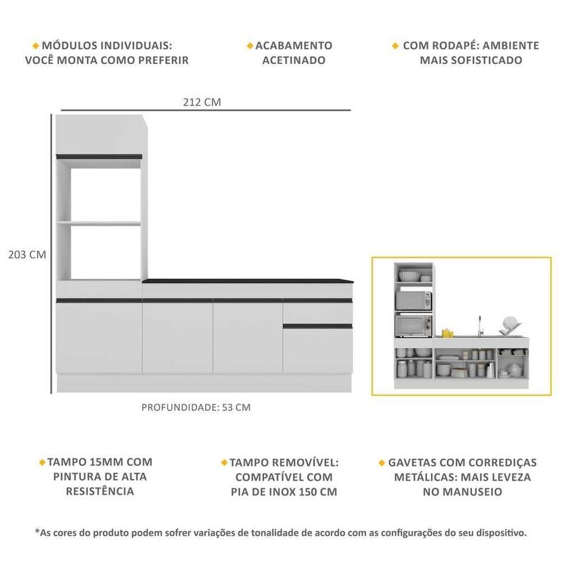 Armário de Cozinha Compacta com Rodapé Veneza Multimóveis MP2113.964 Branco/Preto REF: 769857_Sicredi
