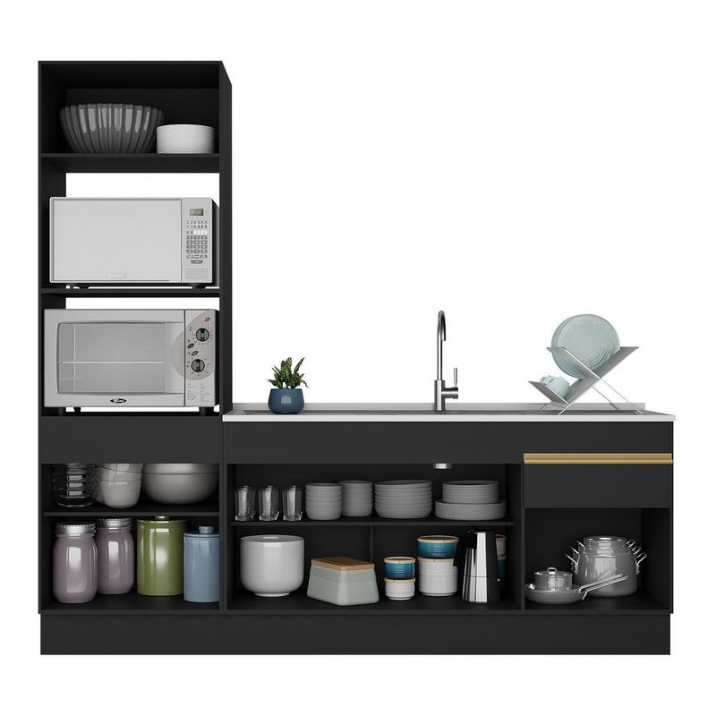 Casa e DecoraçãoMóveisArmário de CozinhaArmário de Cozinha Compacta com Rodapé Veneza Multimóveis MP2113 Preta