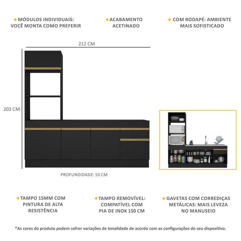 Armário de Cozinha Compacta com Rodapé Veneza Multimóveis MP2113 Preta REF: 769710_Sicredi