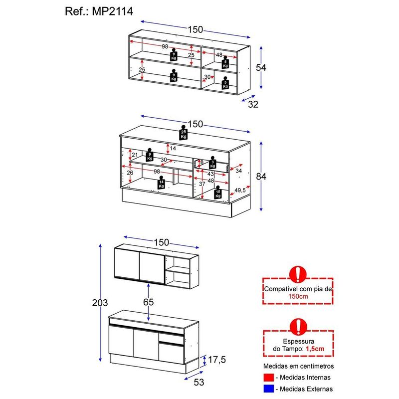 Armário de Cozinha Compacta com Rodapé Veneza Multimóveis MP2114.898 Preto/Branco REF: 770396_Sicredi