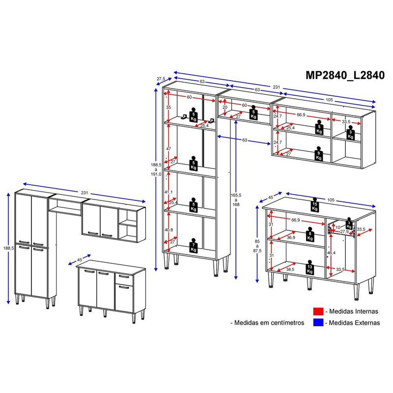 Armário de Cozinha Compacta com Tampo Coimbra Multimóveis Branco/Lacca Fumê REF: 568235_Sicredi