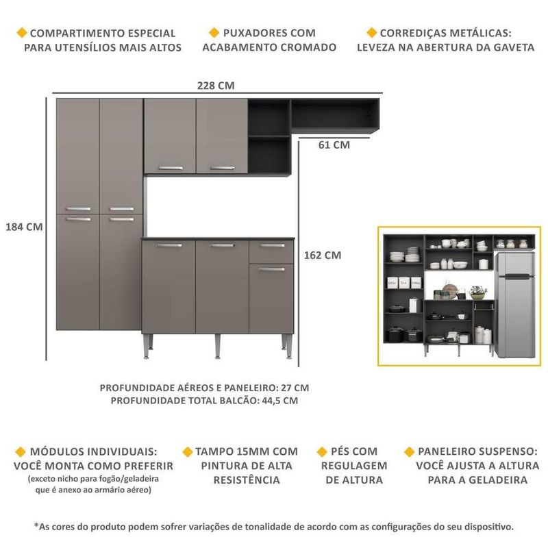 Armário de Cozinha Compacta com Tampo Pequim Sun Multimóveis Preta/Lacca Fumê REF: 572170_Sicredi