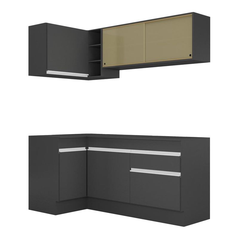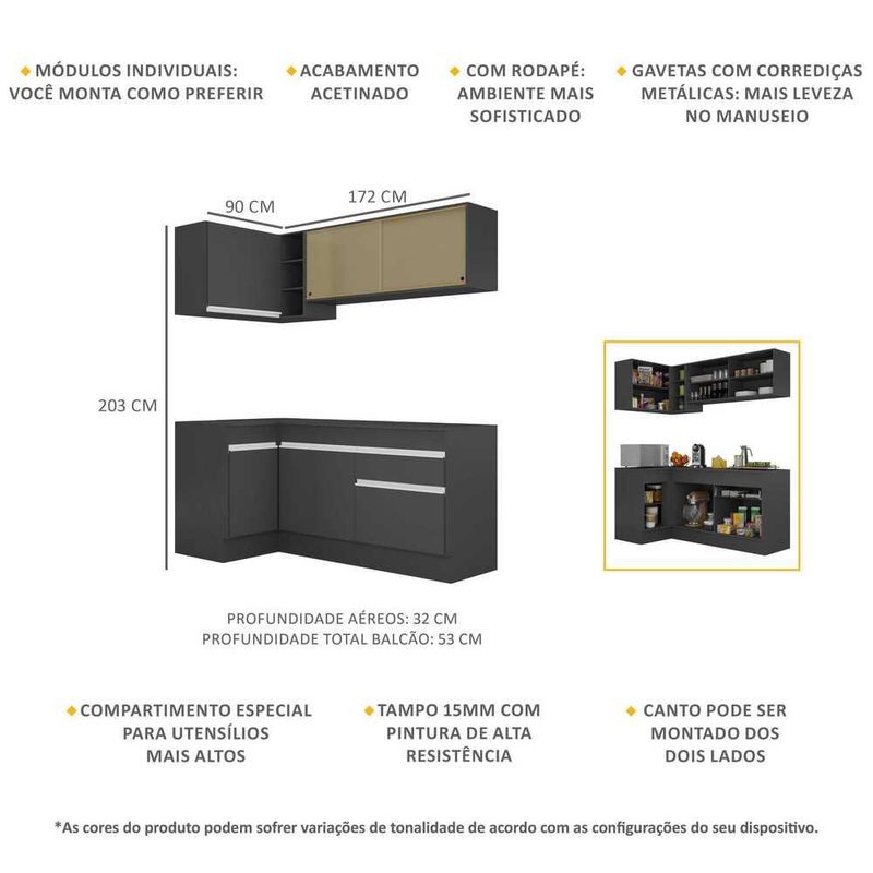 Armário de Cozinha Compacta de Canto com Rodapé Veneza Multimóveis MP2091.898 Preto/Branco REF: 578911_Sicredi