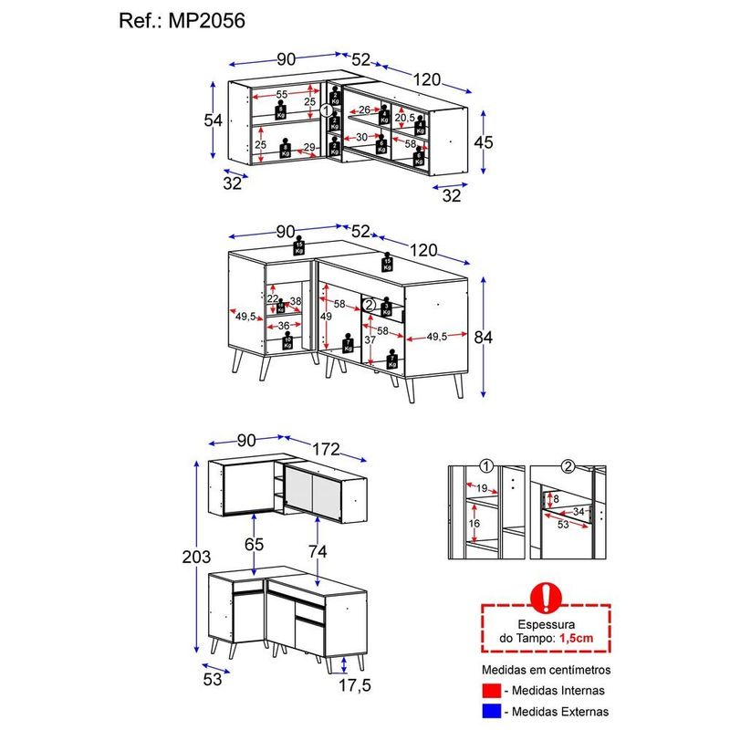 Armário de Cozinha Compacta de Canto Veneza GW Multimóveis MP2056 Branca REF: 769118_Sicredi