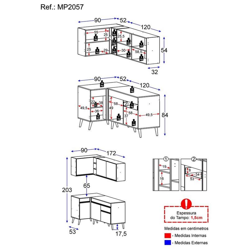 Armário de Cozinha Compacta de Canto Veneza GW Multimóveis MP2057 Branca REF: 568252_Sicredi