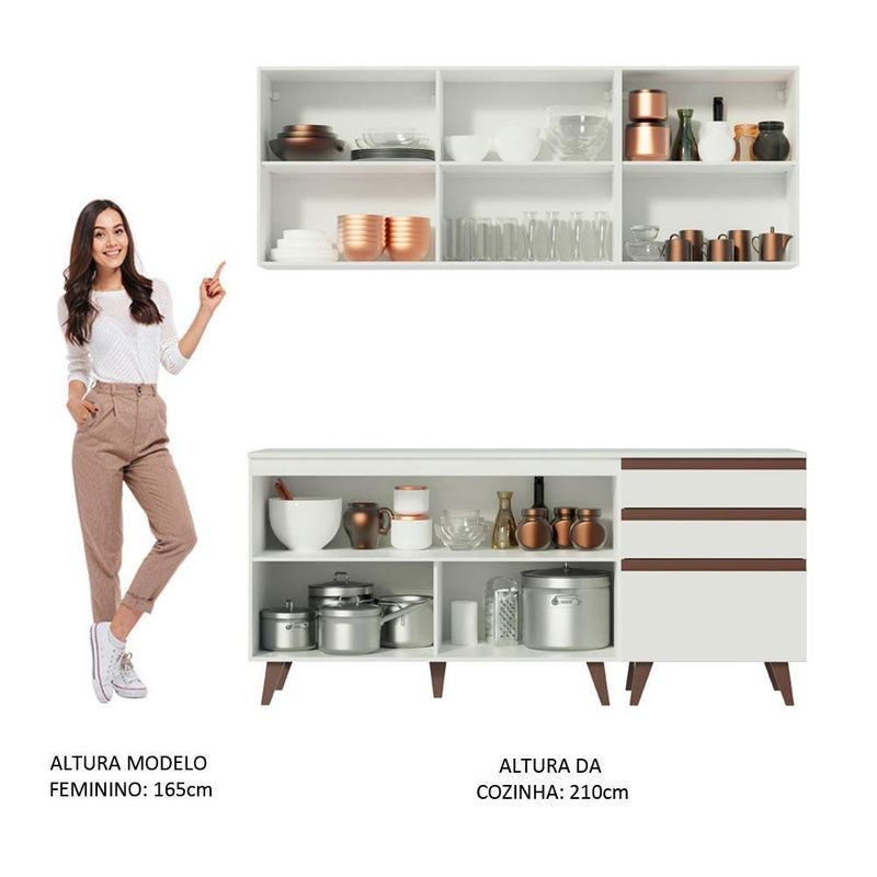 Armário de Cozinha Compacta Madesa Reims com Balcão 5 Portas 3 Gavetas Branco REF: 512141_Sicredi