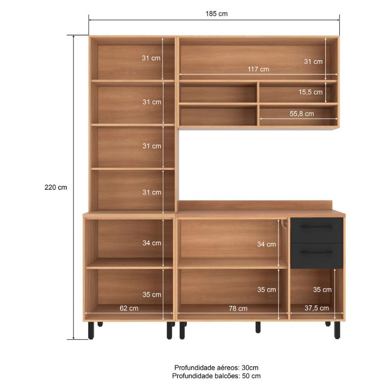 Armário de Cozinha Compacta Modulada 3 Peças com Balcão Havana Multimóveis CR20331 REF: 586692_Sicredi
