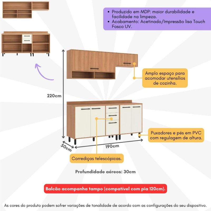 Armário de Cozinha Compacta Modulada 4 Peças com Balcão Havana Multimóveis CR20337 REF: 586694_Sicredi