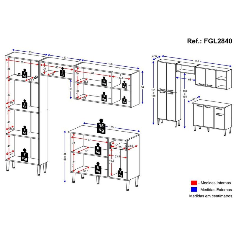 Casa e DecoraçãoMóveisArmário de CozinhaArmário de Cozinha Compacta Multimóveis Coimbra FGL2840 Branca/Lacca Fumê
