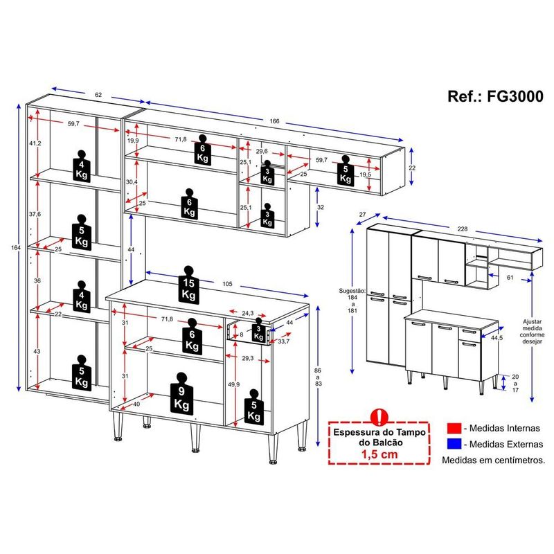 Armário de Cozinha Compacta Multimóveis Pequim Sun FG3000 e Balcão Preta REF: 570031_Sicredi