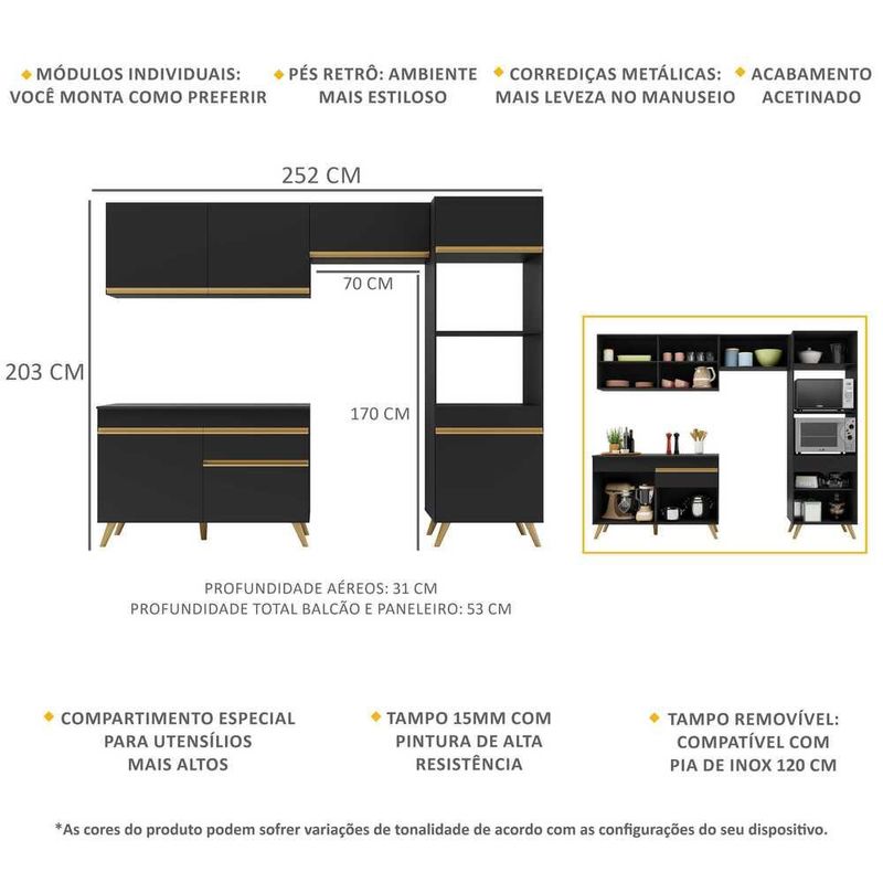 Armário de Cozinha Compacta Multimóveis Veneza GB FG3693 Preta REF: 765005_Sicredi