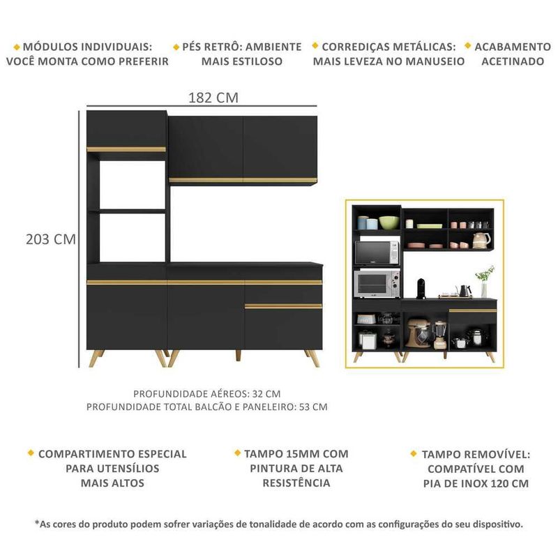 Armário de Cozinha Compacta Multimóveis Veneza GB FG3694 Preta REF: 766088_Sicredi