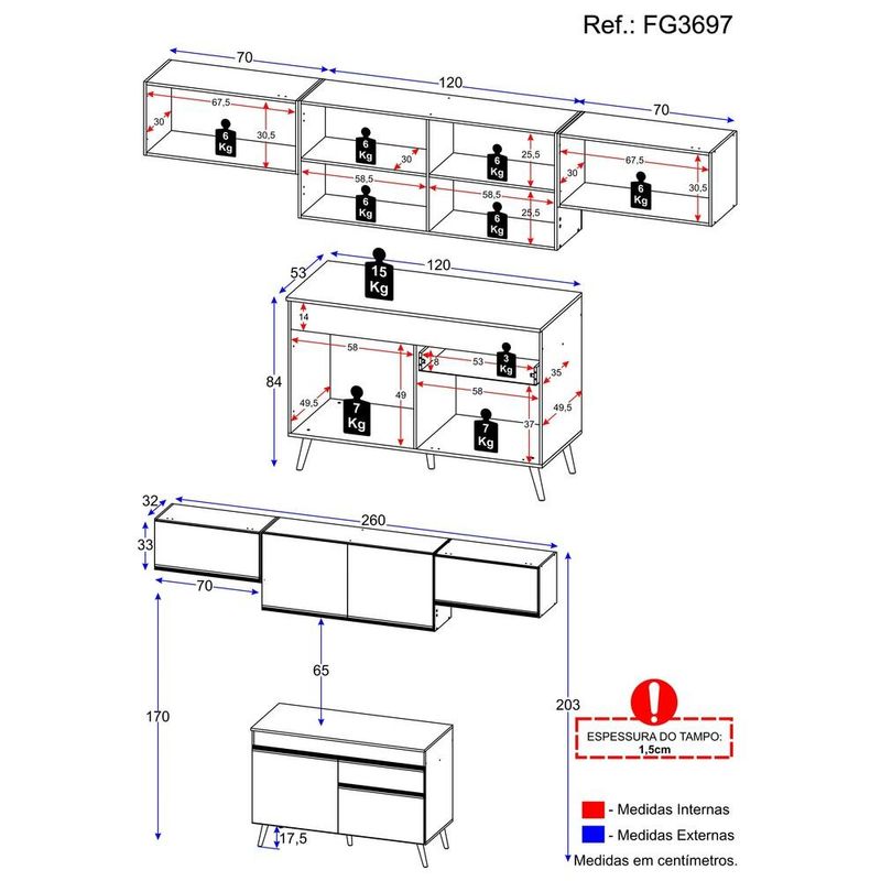 Casa e DecoraçãoMóveisCozinhasArmário de Cozinha Compacta Multimóveis Veneza GW FG3697 Branca