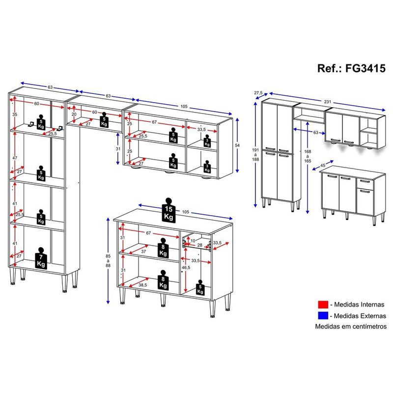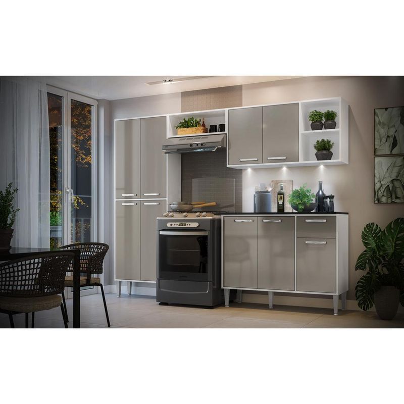Casa e DecoraçãoMóveisArmário de CozinhaArmário de Cozinha Compacta Multimóveis Xangai FG3415 com 3 Leds e Balcão Branca/Lacca Fumê