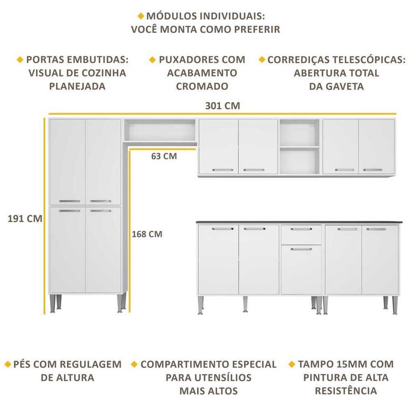 Casa e DecoraçãoMóveisCozinhasArmário de Cozinha Compacta Multimóveis Xangai Jazz FG3157 Branca