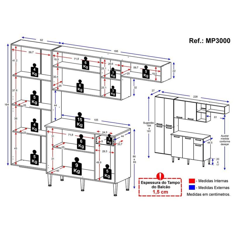 Armário de Cozinha Compacta Pequim Sun Multimóveis com Balcão Madeirado com Preto REF: 571017_Sicredi