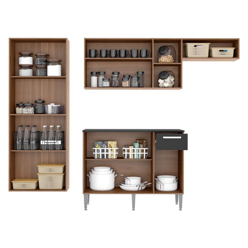 Casa e DecoraçãoMóveisCozinhasArmário de Cozinha Compacta Pequim Sun Multimóveis com Balcão Madeirado com Preto