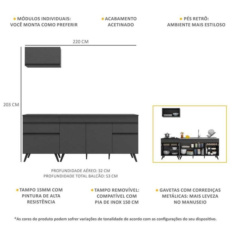 Armário de Cozinha Compacta Veneza Multimóveis MP2074.895 Preto REF: 764417_Sicredi