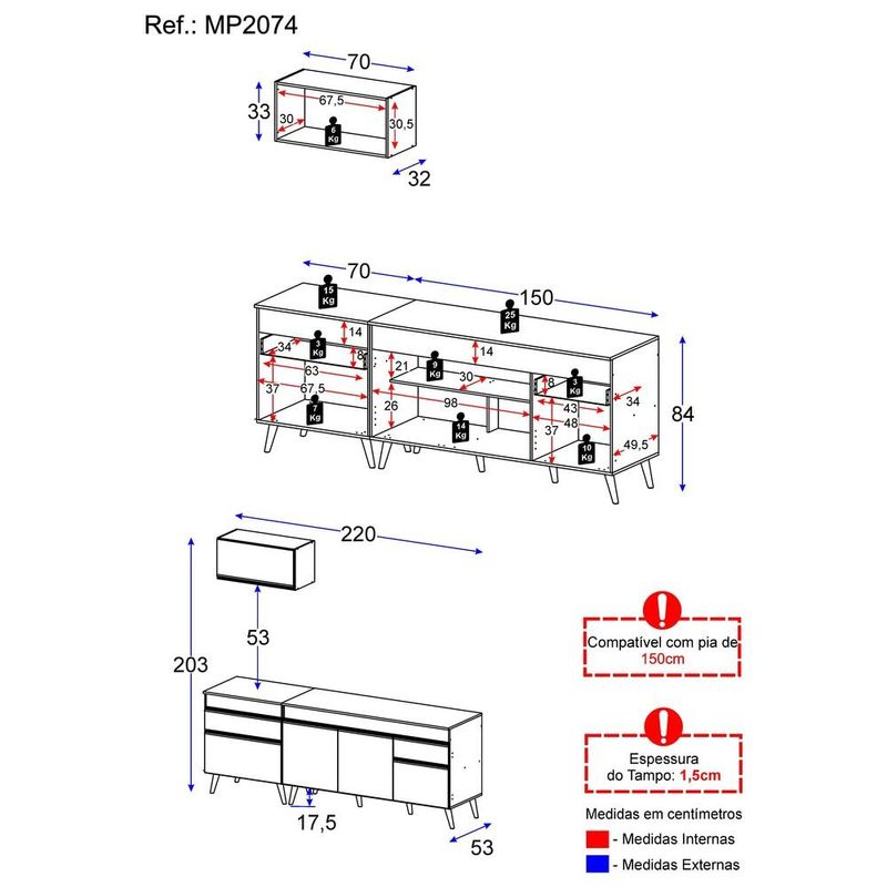 Casa e DecoraçãoMóveisArmário de CozinhaArmário de Cozinha Compacta Veneza Multimóveis MP2074.895 Preto
