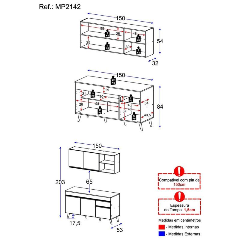 Armário de Cozinha Compacta Veneza Multimóveis MP2142.891 Branco REF: 766439_Sicredi