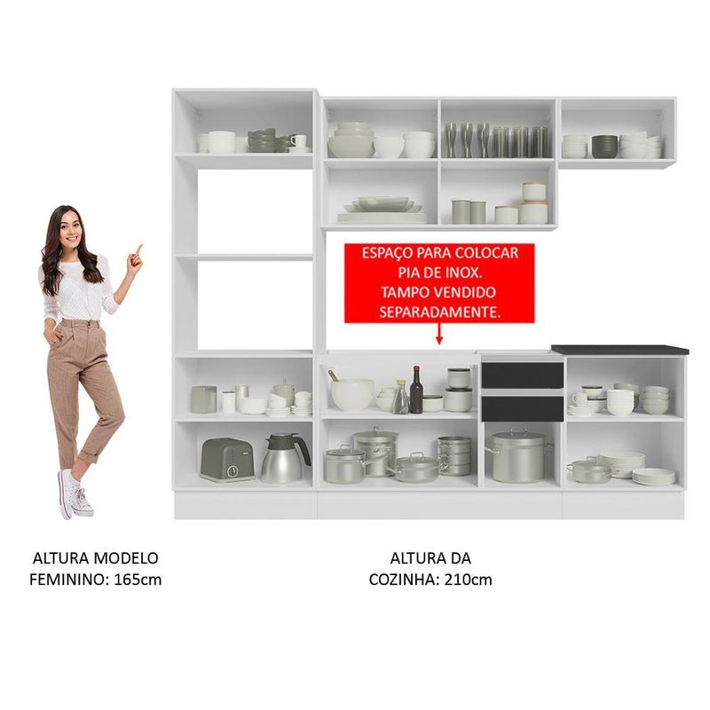 Casa e DecoraçãoMóveisCozinhasArmário de Cozinha Completa 100% MDF 250cm Branco/Preto Acordes Madesa 03
