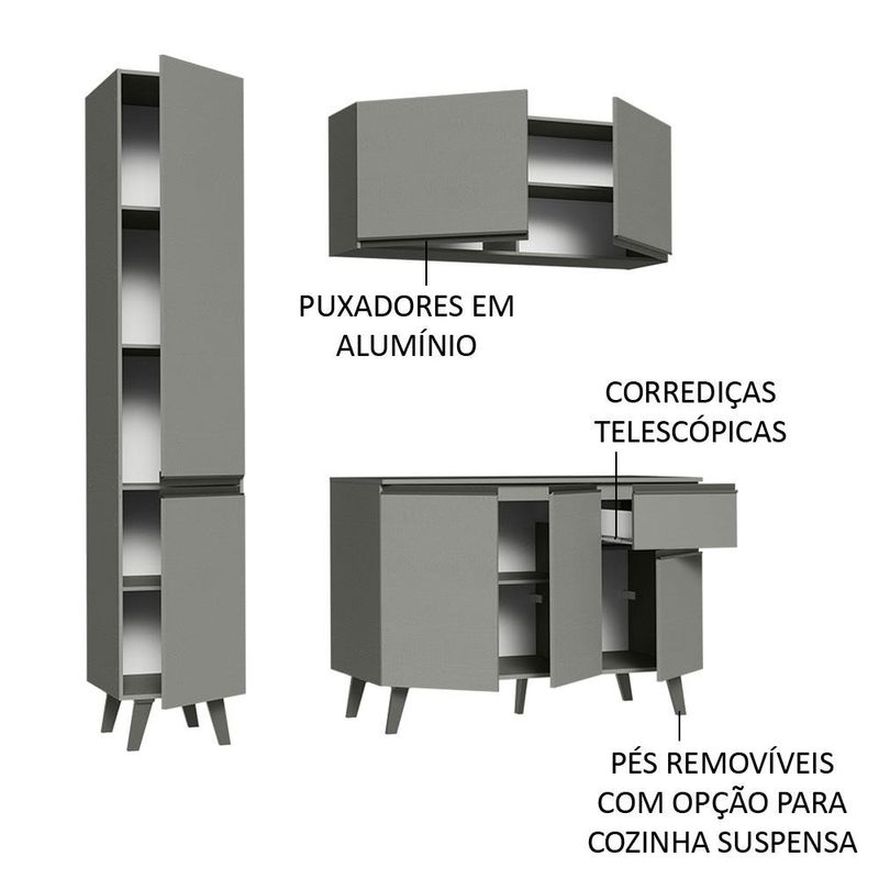 Casa e DecoraçãoMóveisCozinhasArmário de Cozinha Completa 160cm Cinza Nice Madesa 01