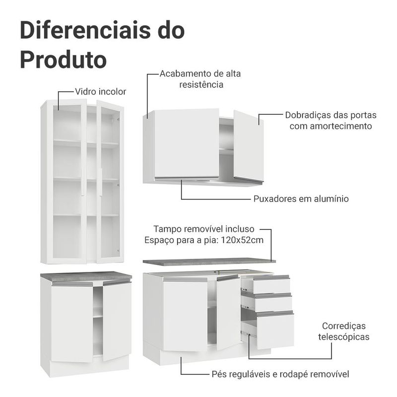 Casa e DecoraçãoMóveisCozinhasArmário de Cozinha Completa 190cm Branco Glamy Madesa 05