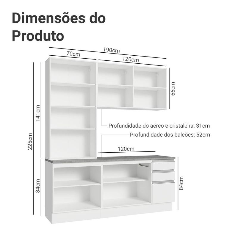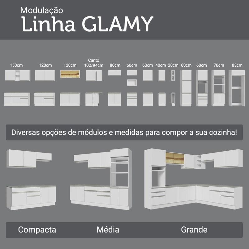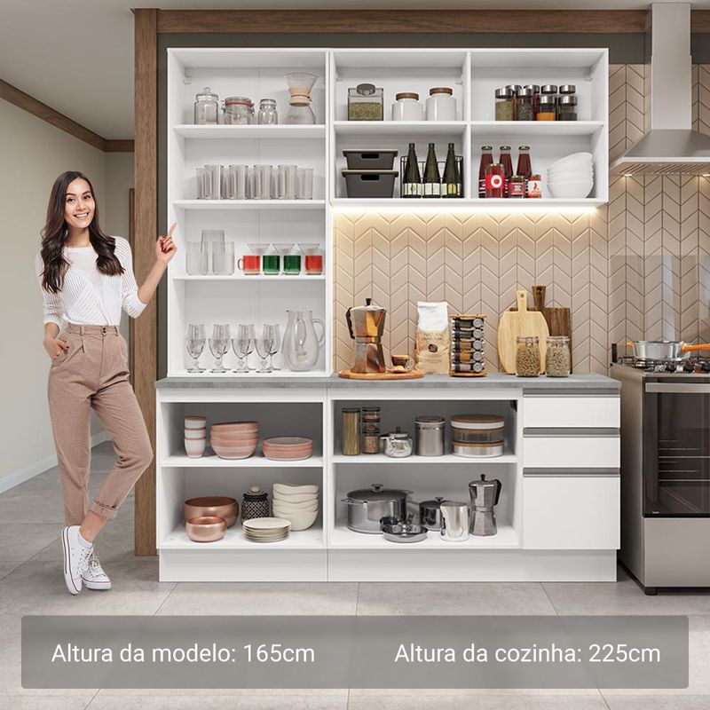 Armário de Cozinha Completa 190cm Branco Glamy Madesa 05 REF: 669316_Sicredi