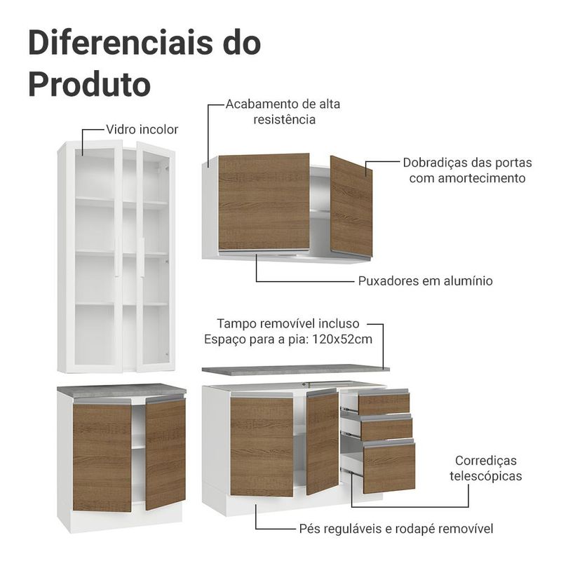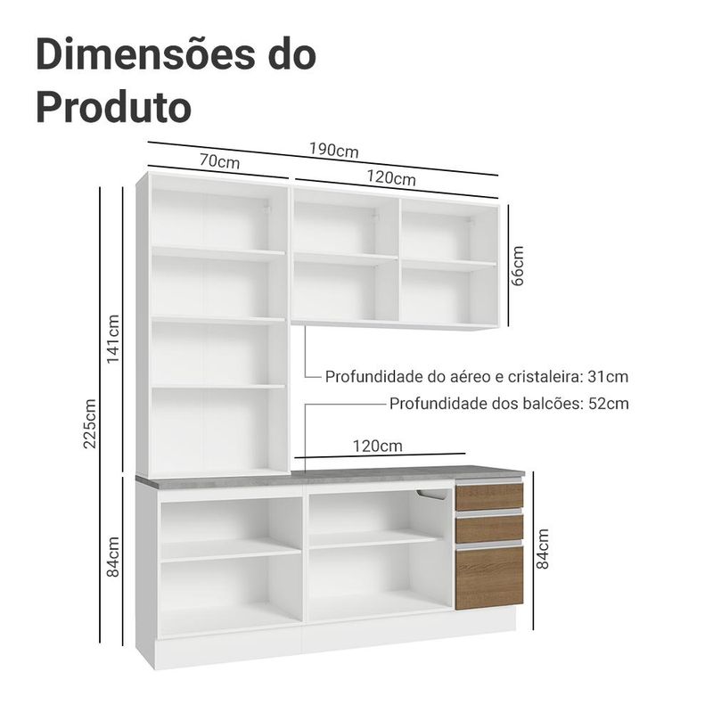 Casa e DecoraçãoMóveisCozinhasArmário de Cozinha Completa 190cm Branco/Rustic Glamy Madesa 05