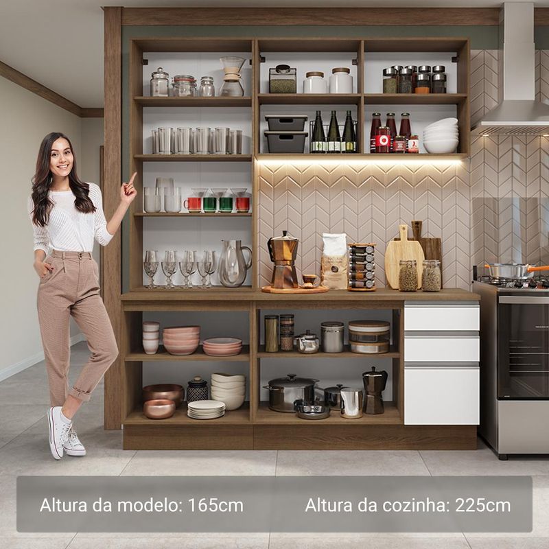 Casa e DecoraçãoMóveisCozinhasArmário de Cozinha Completa 190cm Rustic/Branco Glamy Madesa 05