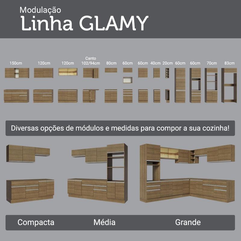 Armário de Cozinha Completa 190cm Rustic Glamy Madesa 05 REF: 669331_Sicredi
