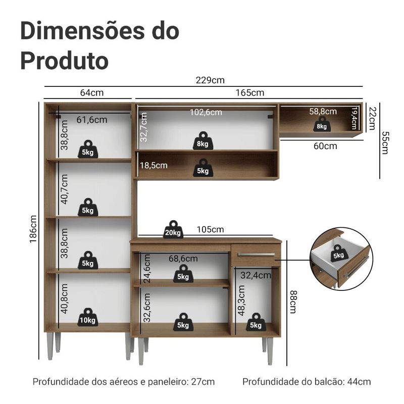 Casa e DecoraçãoMóveisCozinhasArmário de Cozinha Completa 229cm Rustic Emilly Madesa 016