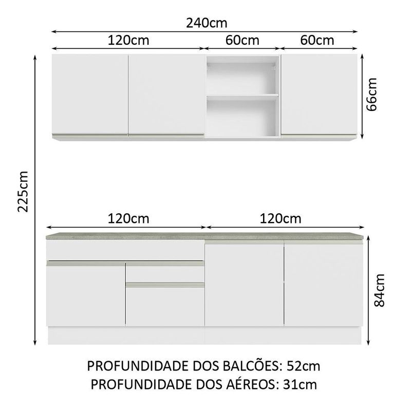 Armário de Cozinha Completa 240cm Branco Glamy Madesa 06 REF: 512191_Sicredi