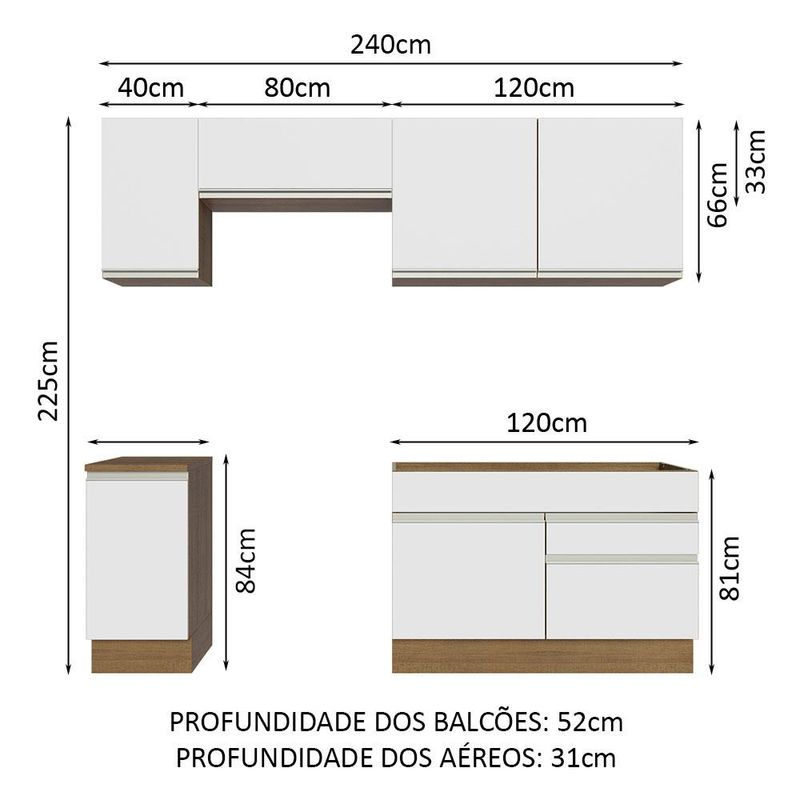 Casa e DecoraçãoMóveisCozinhasArmário de Cozinha Completa 240cm Rustic/Branco Glamy Madesa 07