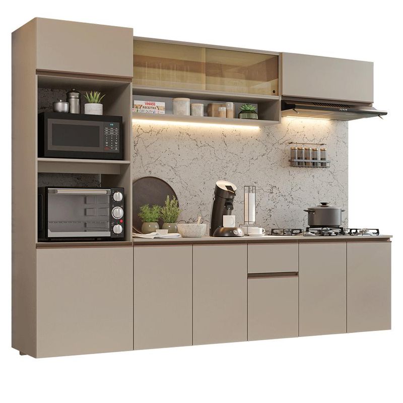 Armário de Cozinha Completa 260 cm Suspenso Crema Nice Madesa 14 REF: 7891760960276