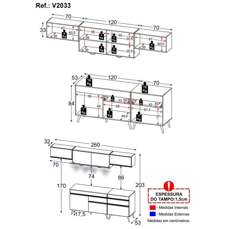 Casa e DecoraçãoMóveisCozinhasArmário de Cozinha Completa 260cm com Leds Veneza Up Multimóveis V2033