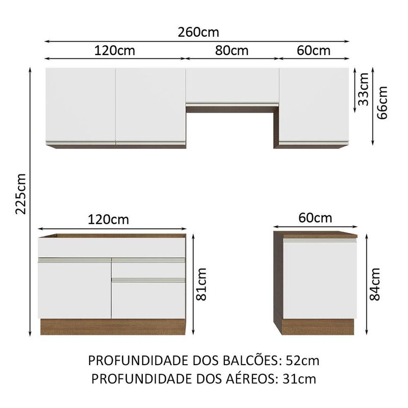 Casa e DecoraçãoMóveisCozinhasArmário de Cozinha Completa 260cm Rustic/Branco Glamy Madesa 05