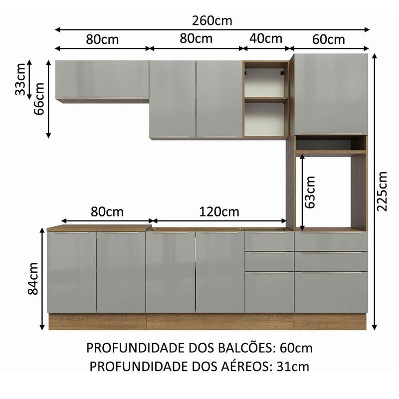 Casa e DecoraçãoMóveisCozinhasArmário de Cozinha Completa 260cm Rustic/Cinza Lux Madesa 08