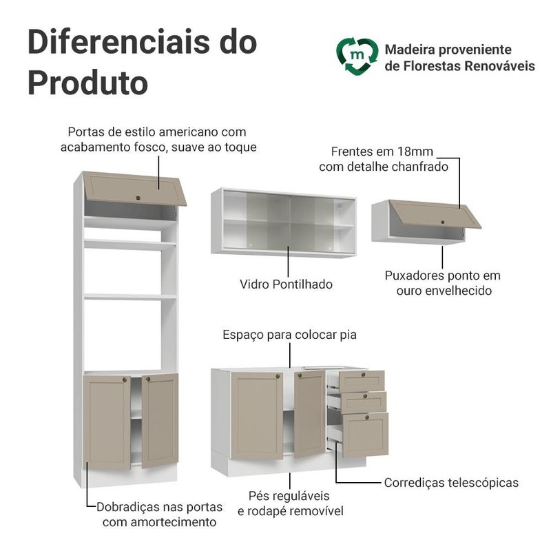 Casa e DecoraçãoMóveisCozinhasArmário de Cozinha Completa 270 cm Branco/Crema Vik Madesa 03