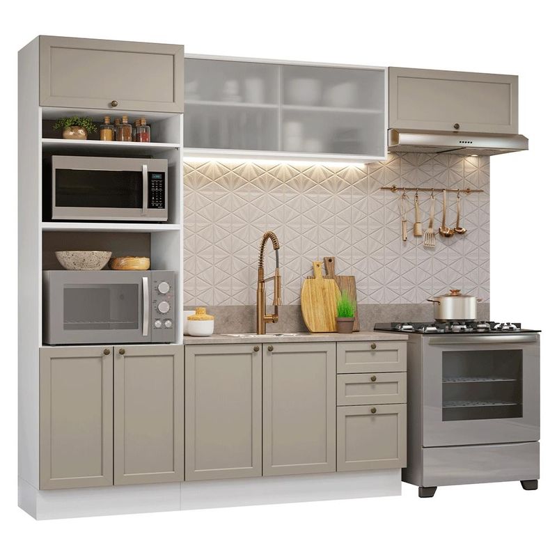 Armário de Cozinha Completa 270 cm Branco/Crema Vik Madesa 03 REF: 7891760152923