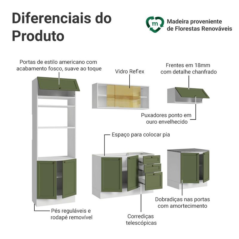 Casa e DecoraçãoMóveisArmário de CozinhaArmário de Cozinha Completa 270 cm Branco/Verde Vik Madesa 02