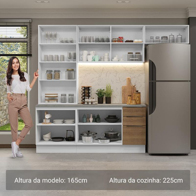Armário de Cozinha Completa 270cm Branco/Rustic Stella Madesa 11 REF: 684788_Sicredi