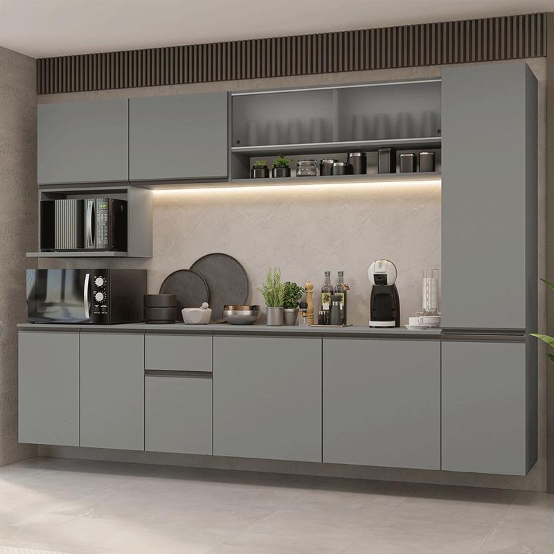 Casa e DecoraçãoMóveisCozinhasArmário de Cozinha Completa 280 cm Suspensa Cinza Nice Madesa 04